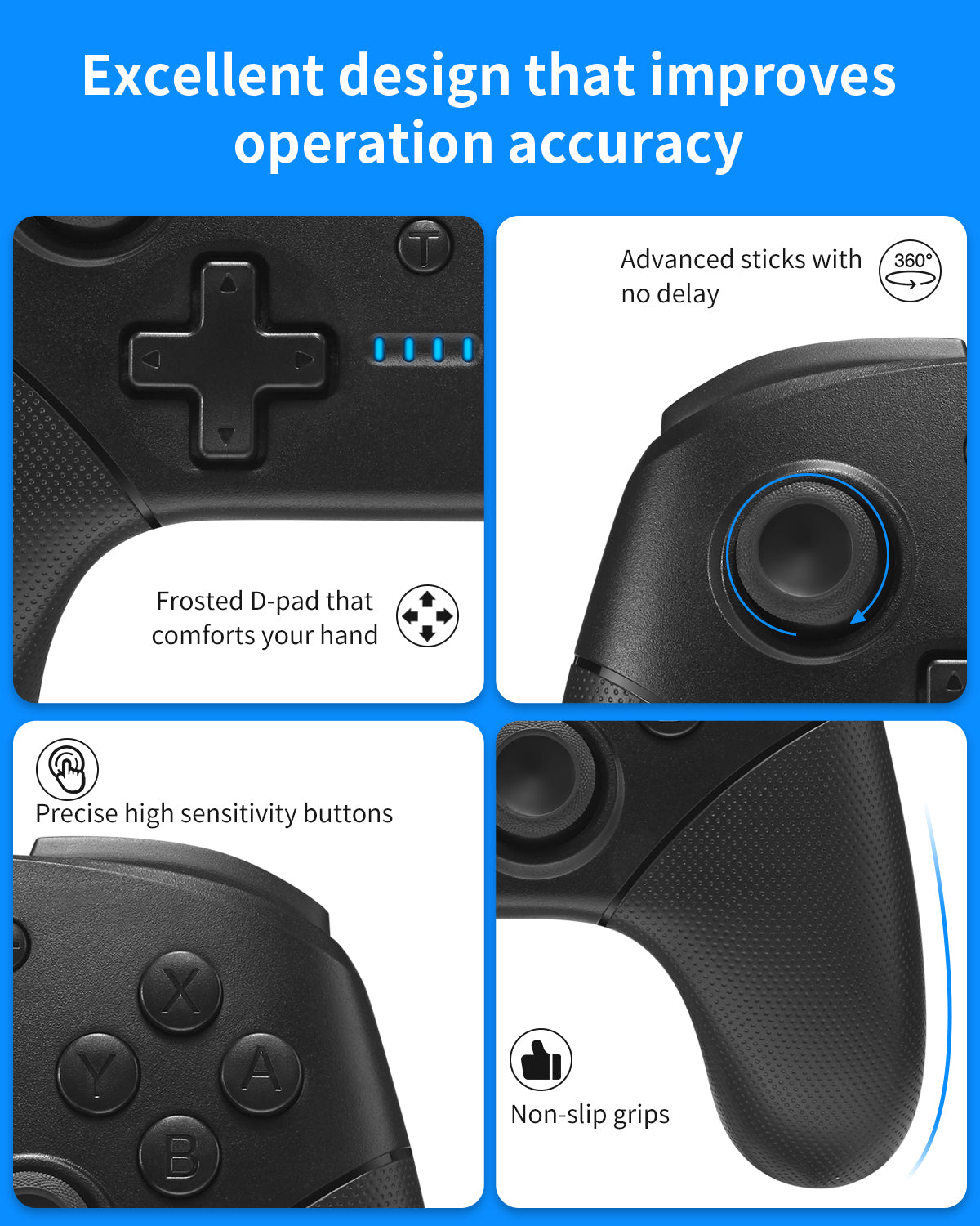 Wireless Switch Controller for Nintendo Console Pro Gamepad with Joystick [2020 New] Non-Slip Ergonomic Design, Black